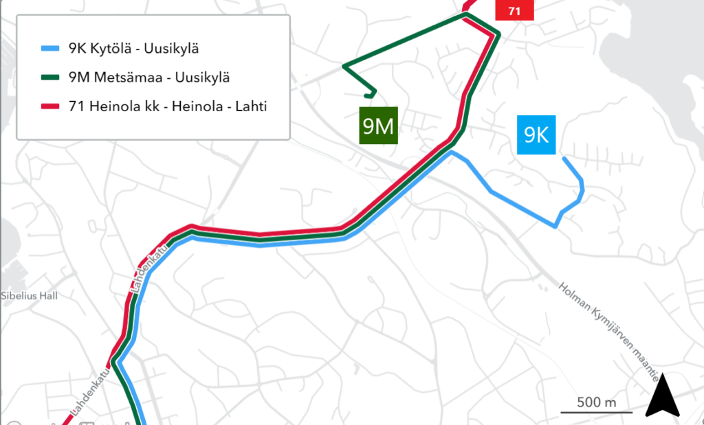 Keskiviikkona 10.8.2022 Heinlammin siltatyömaan vuoksi koko kesän poikkeusreitillä olleet linjat 9 ja 71 palaavat normaalireiteille.
